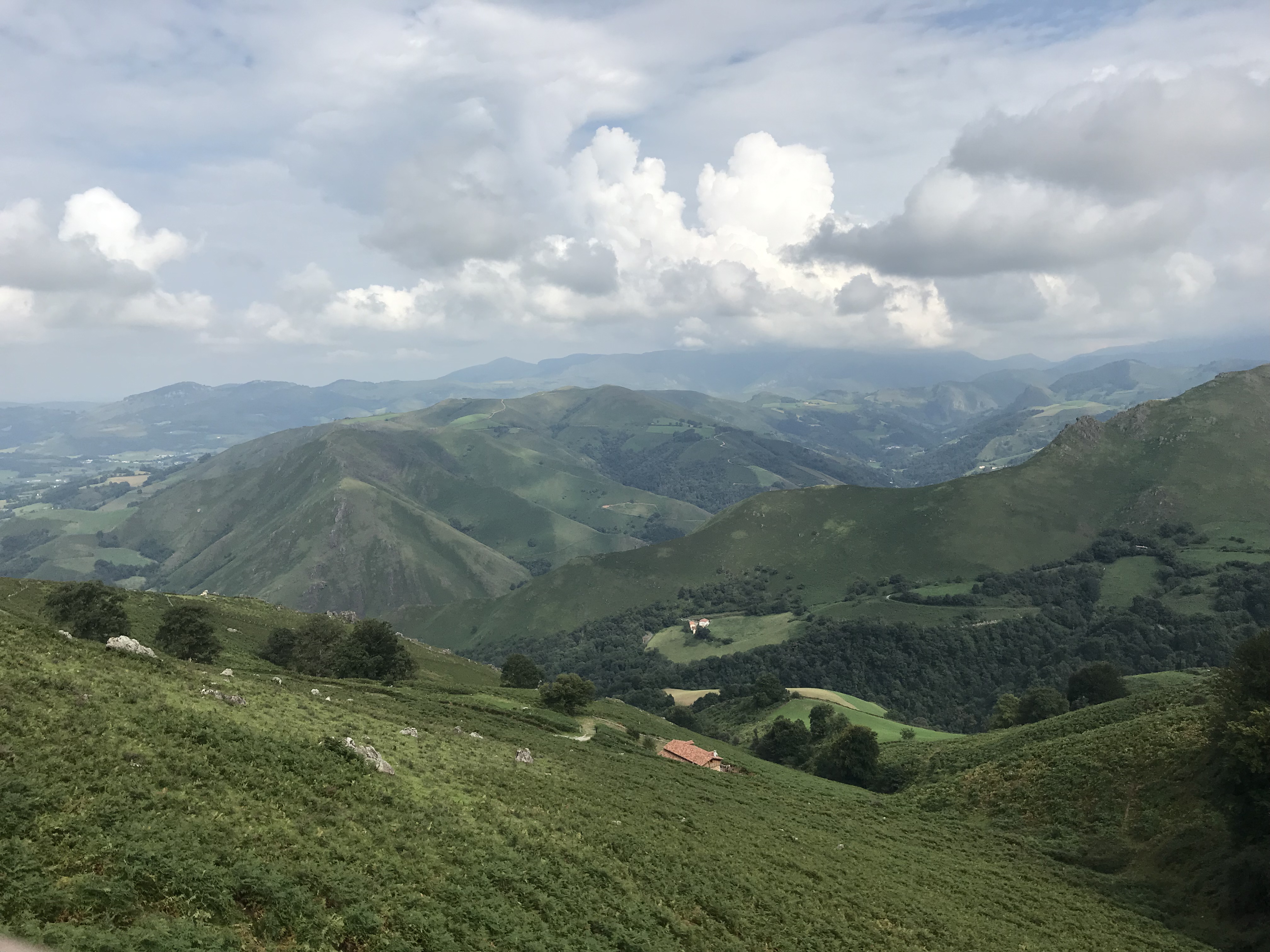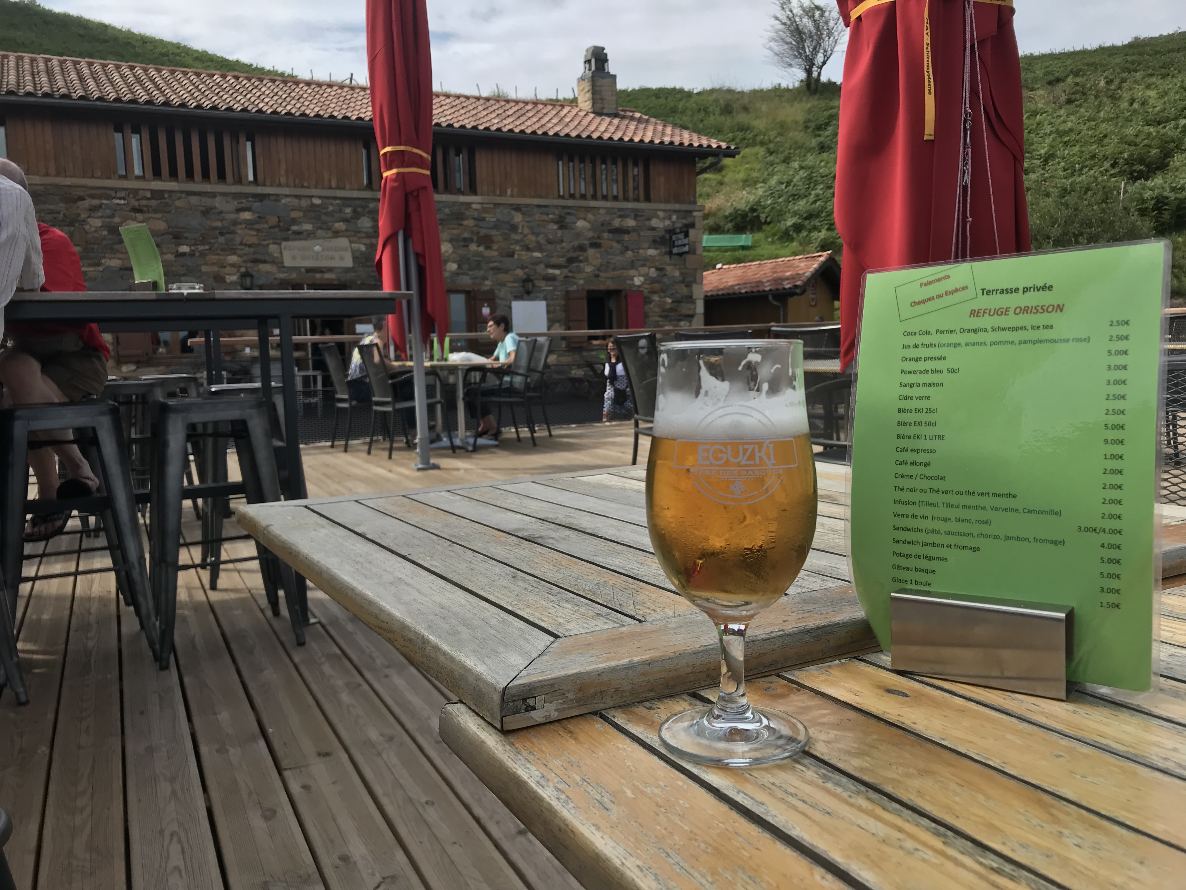 The path to Orisson became a steep climb up a rocky path, but eventually rejoined the road. When Refuge Orisson came into view it was a welcome sight. I checked in, having booked online two months earlier. After a shower and a change of clothes I was ready to enjoy a cold drink on the balcony overlooking the valley.