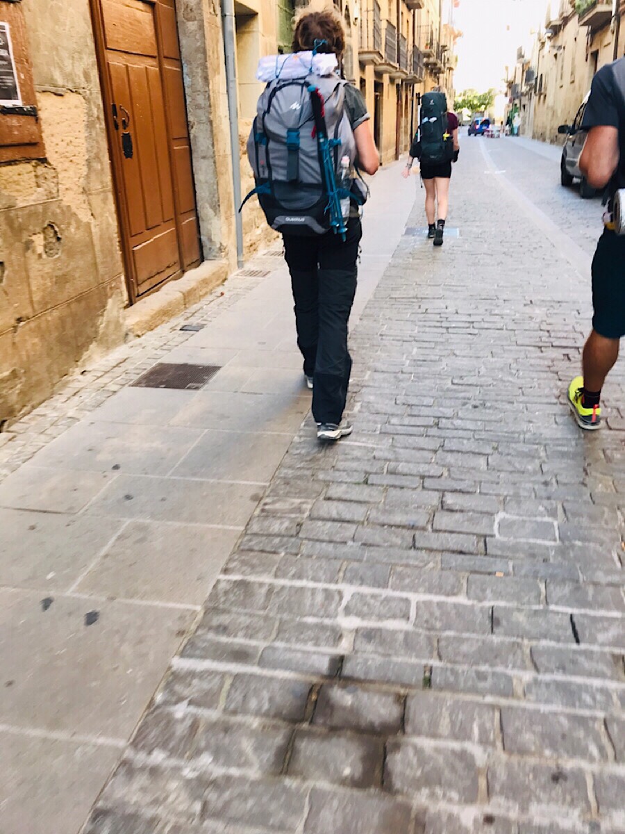 I started walking at about 7am, half an hour before sunrise. I immediately learned how easy it was to miss the way markers, which in their simplest form are a yellow arrow on a wall, a fence or the road. They can also be a stone pillar and in towns are sometimes seen as a stainless steel circle embedded in a pavement, contains the shell symbol and more.