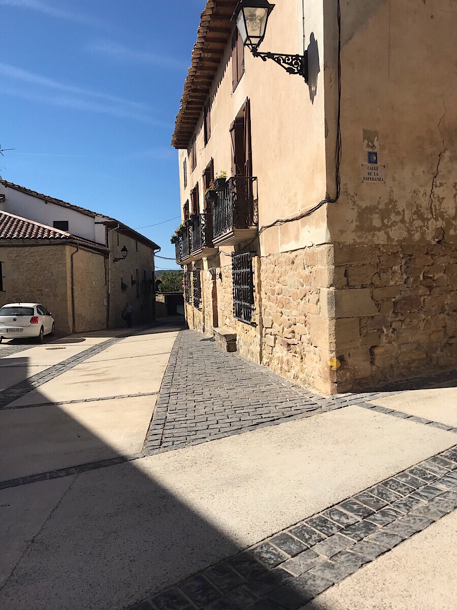 After leaving the Cirauqui area I was aiming to end my walk at Lorca and after a long climb uphill to Lorca I was certainly ready to stop. But the only albergue had no vacancies. A French couple were sitting next to the alburgue and told me they had already called a taxi to take them 4km to the next place, Villatuerta. They offered to take me too, which was very welcome at that stage. So it was Villatuerta I stayed that night. A great meal in good company. A room of four beds and the night was very quiet.