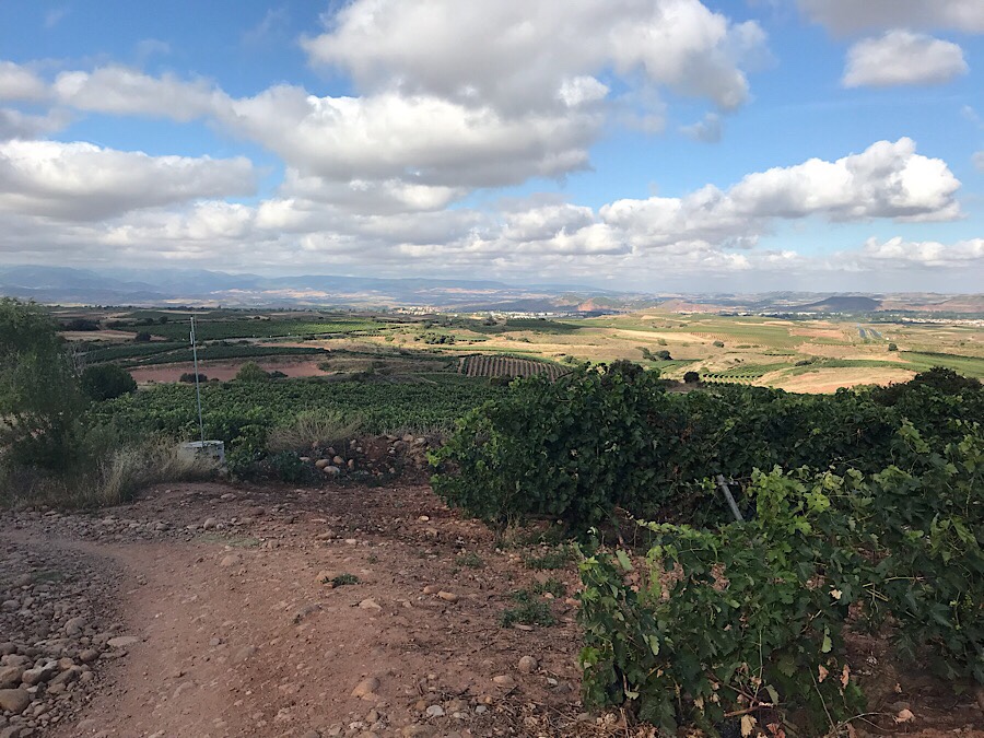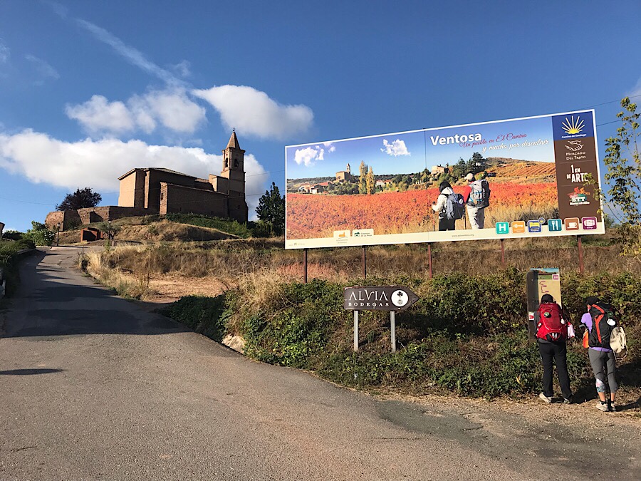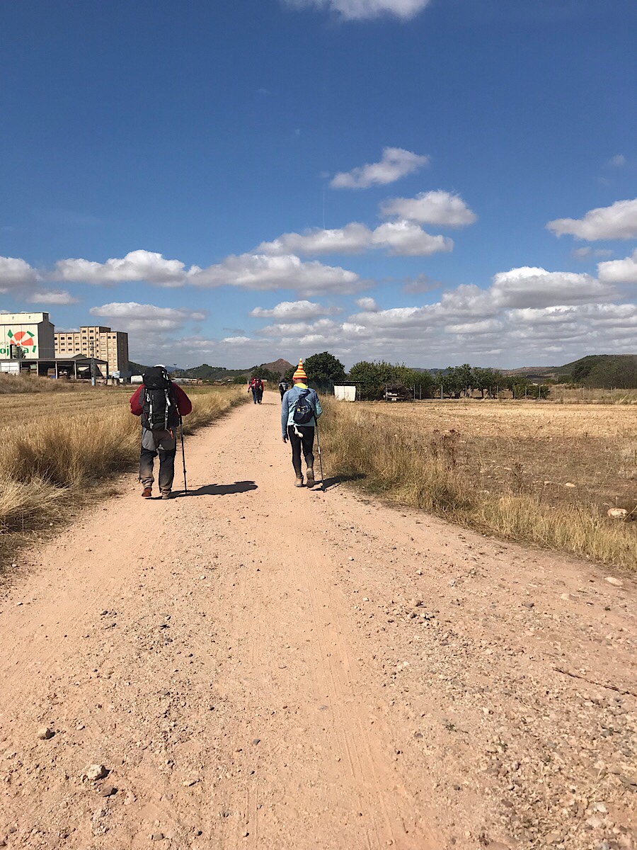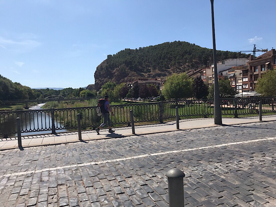 A long slow climb uphill from Najera among grape vines bursting with fruit. Then an easier downhill track to Azofra where preparations were under way for a festival related to the running of the bulls.