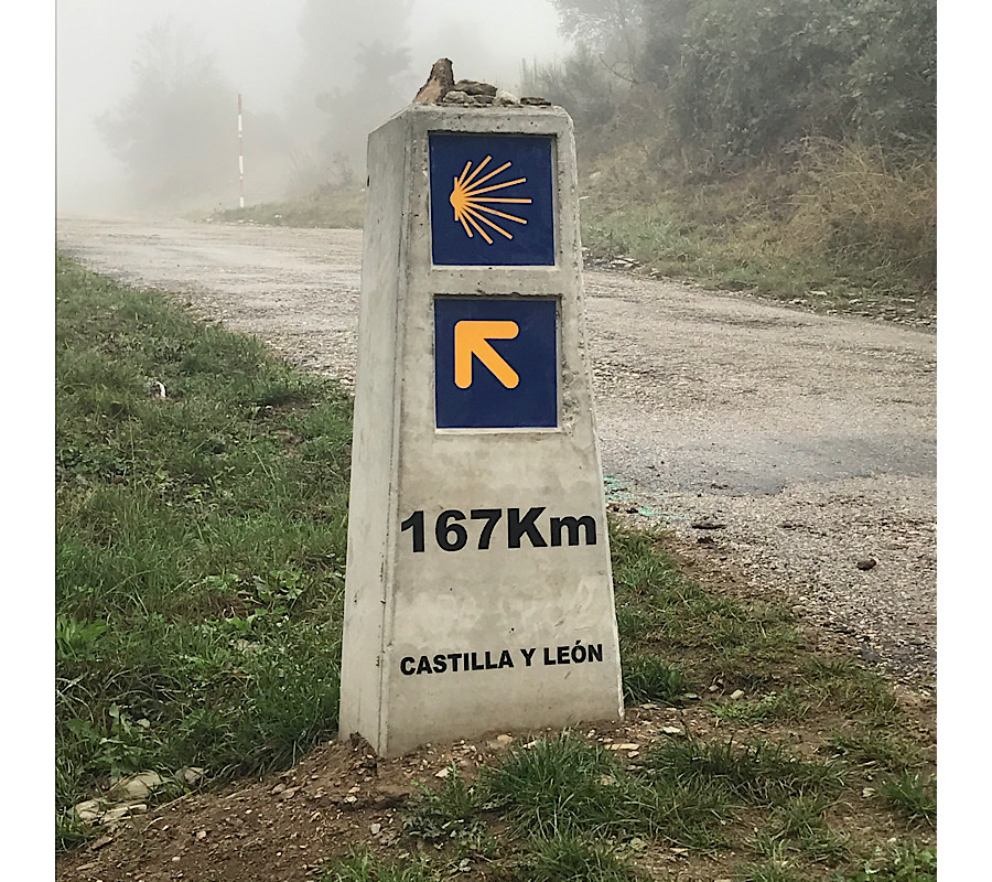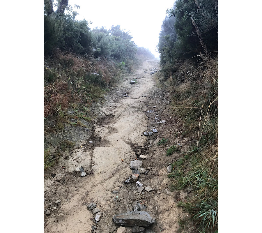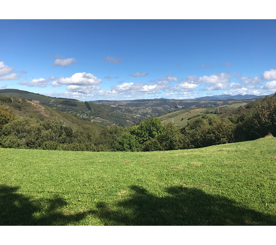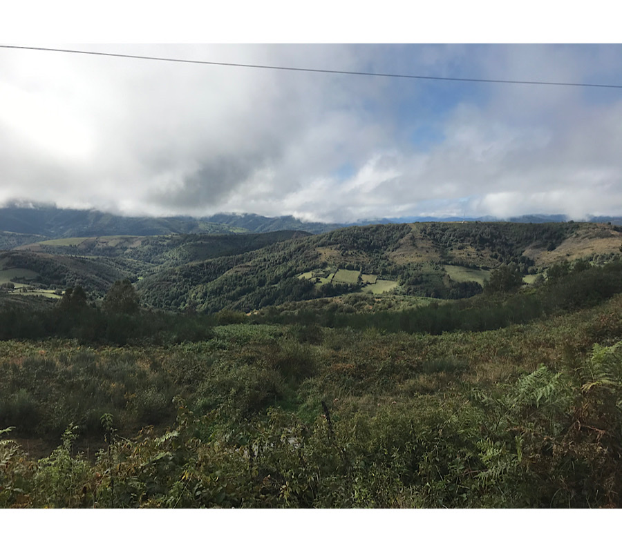 Left Ruitelan around 7am and walked slowly through the town and up the road. After a km or so the way left the road and then started a long steep climb up to La Faba where a neat newish cafe provided a welcome coffee and tortilla for breakfast.
