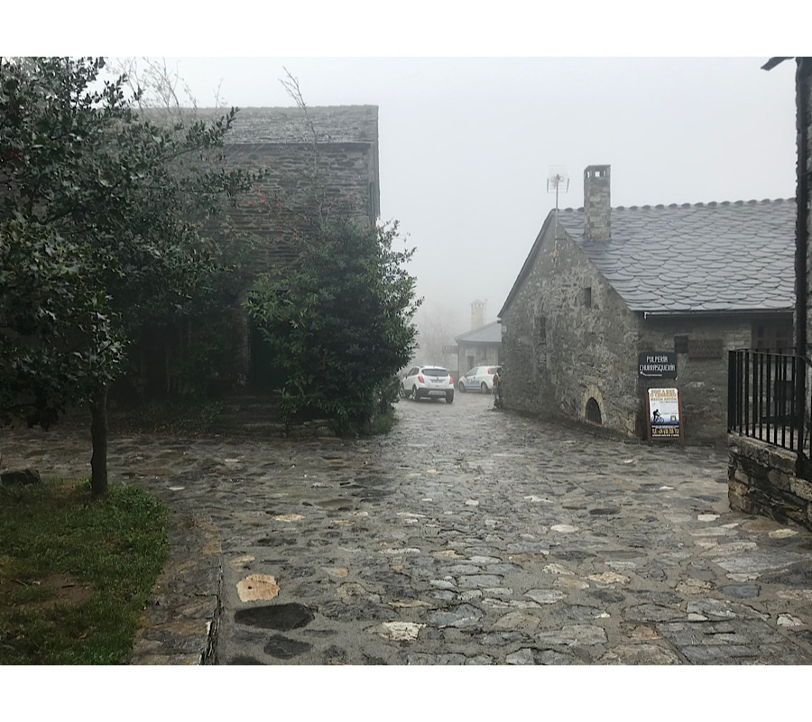After that it was all up, though not as steep, to OCebreiro where a bus load of tourists were strolling up the road to the church.